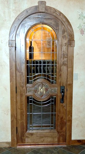 We offer custom wine cellar doors in any shape or size - round top, square top, with carving, without carving, any wood species. Leaded glass may be included. In short, we can make your cellar entry very special.